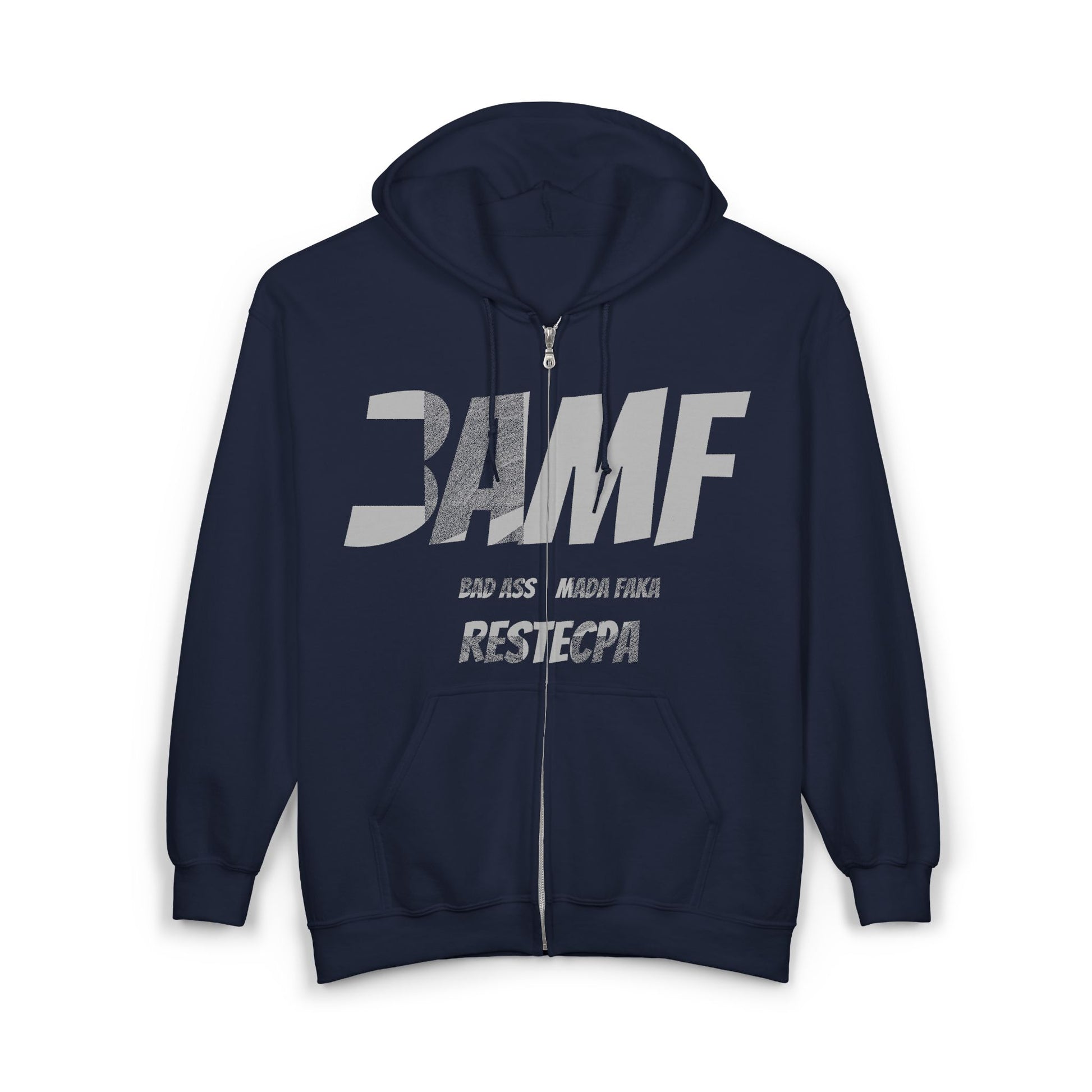 BAMF Zipper Hoodie — Bold Mada Faka Full-Zip Sweatshirt
